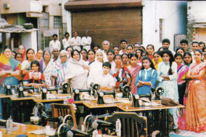 - Hon.Smt.Yashodharaji Bajaj with Smt.Madankuvar Parakha and Mrs.Neel Bajaj donating Sewing Machines to women for Self-employment and self-dependent .